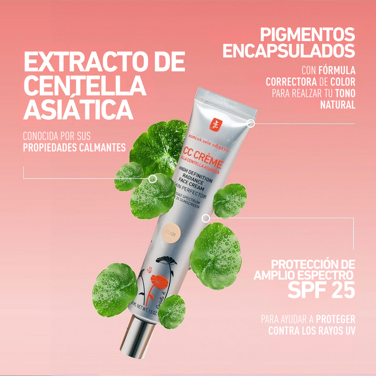 Nuestra CC Cream con Centella Asiática combina extractos calmantes, pigmentos inteligentes y protección solar FPS 25 para ofrecerte un resultado completo: corrige imperfecciones, unifica el tono y protege tu piel a diario.